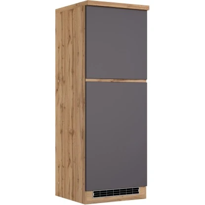 Mit dem Kühlschrankumbauschrank Turin von Held Möbel mit hochwertigen MDF-Fronten können Sie ihre Küchenzeile perfekt ergänzen. Optisch begeistert der Schrank durch die klaren Linien sowie die zweifarbige Gestaltung. Da der Schrank in zwei Farbkombinationen verfügbar ist, können Sie die Küche im Mix-and-Match Stil einrichten. Ein zusätzliches Staufach für haltbare Lebensmittel und andere Küchenutensilien findet sich über der Kühlschrank-Nische.