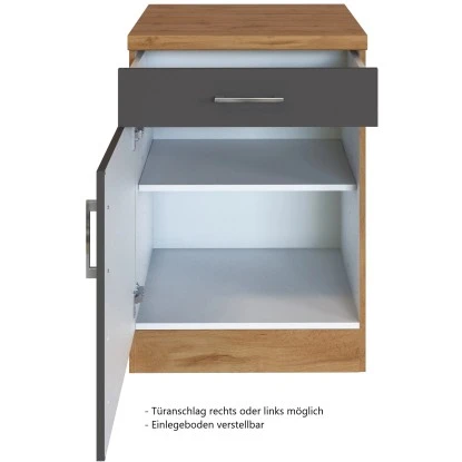 Der Held Möbel Unterschrank Sorrento misst B x H x T: 50 cm x 85 cm x 60 cm, 1 Tür, 1 Schubkasten. 1 Einlegeboden, Metallgriff
