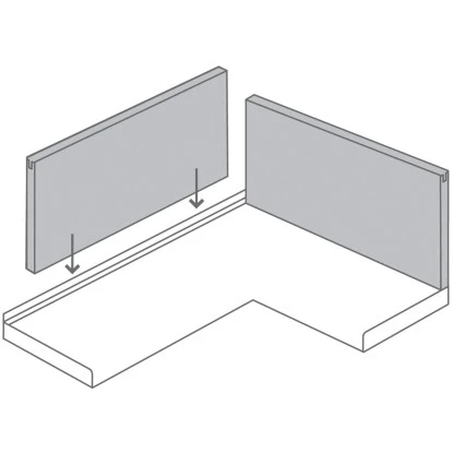 Die kunststoffbeschichtete dekorative Flachpressplatte 13 mm, entsprechend EN 14322, ist beidseitig mit Melaminharz direktbeschichtet. Im Set enthalten sind eine Hart-PVC-Leiste mit farbiger Weichdichtlippe für die Befestigung der Rückwand und Kantenumleimer (650 mm lang, 44 mm breit).
