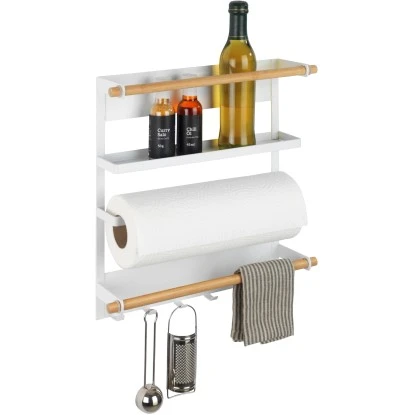 Das Wenko Küchenregal Magna Magnetisches Regal zur Befestigung ohne Bohren Weiß sorgt für Ordnung in jeglicher Hinsicht. Es bietet die praktische Ablage die Möglichkeit der Aufhängung von Küchenhandtüchern und Küchenutensilien, geschickte Stellfläche für Gewürze und Öle sowie eine komfortable Rollenhalterung für Küchenpapier.