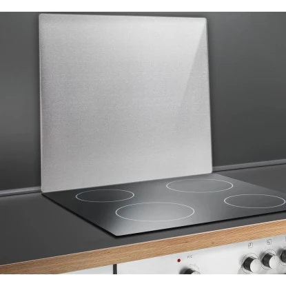 Mühevolles Fugenreinigen gehört mit der Wandblende der Vergangenheit an. Der dekorative Spritzschutz aus gebürstetem, rostfreien Edelstahl mit einer Materialstärke von 0,6 mm schützt vor Fett- und Saucenspritzern, so dass die Wand hinter dem Herd sauber bleibt.